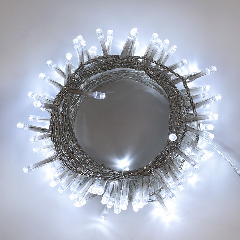 La catena di 500 luci LED bianche è ideale per decorare ambienti interni ed esterni, creando atmosfere magiche e suggestive. Con una lunghezza di 25 metri e bassa tensione a 31V, garantisce sicurezza ed efficienza. Il cavo trasparente si adatta facilmente a diversi contesti, mettendo in risalto le luci senza risultare invadente. Facile da installare, la catena può essere avvolta intorno a un albero di Natale o disposta lungo un giardino, grazie alla distanza di 5 cm tra ogni LED che assicura una distribuzione uniforme della luce. Le 500 luci LED di tipo F5 mm offrono un'illuminazione brillante ma efficiente, creando un'atmosfera calda e accogliente. Dispone di otto modalità di illuminazione, tra cui luce fissa, lampeggio, dissolvenza e scintillio, permettendo di personalizzare l'effetto luminoso per ogni occasione. La protezione IP44 rende la catena resistente all'acqua e alla polvere, ideale per l'uso esterno. Con un cavo di alimentazione di 3 metri, l'installazione è semplice e flessibile, anche in spazi estesi o lontani da prese di corrente.