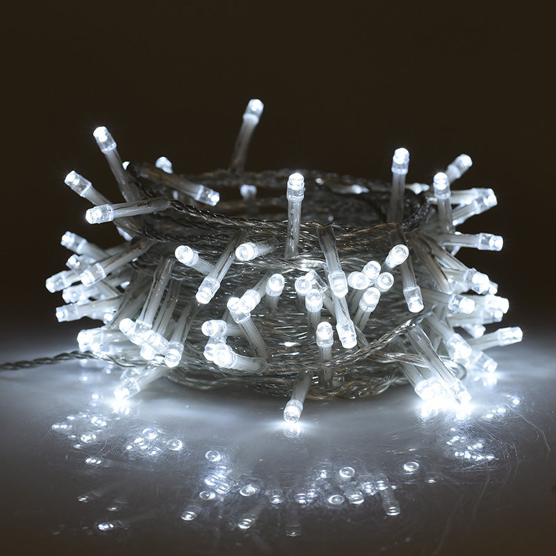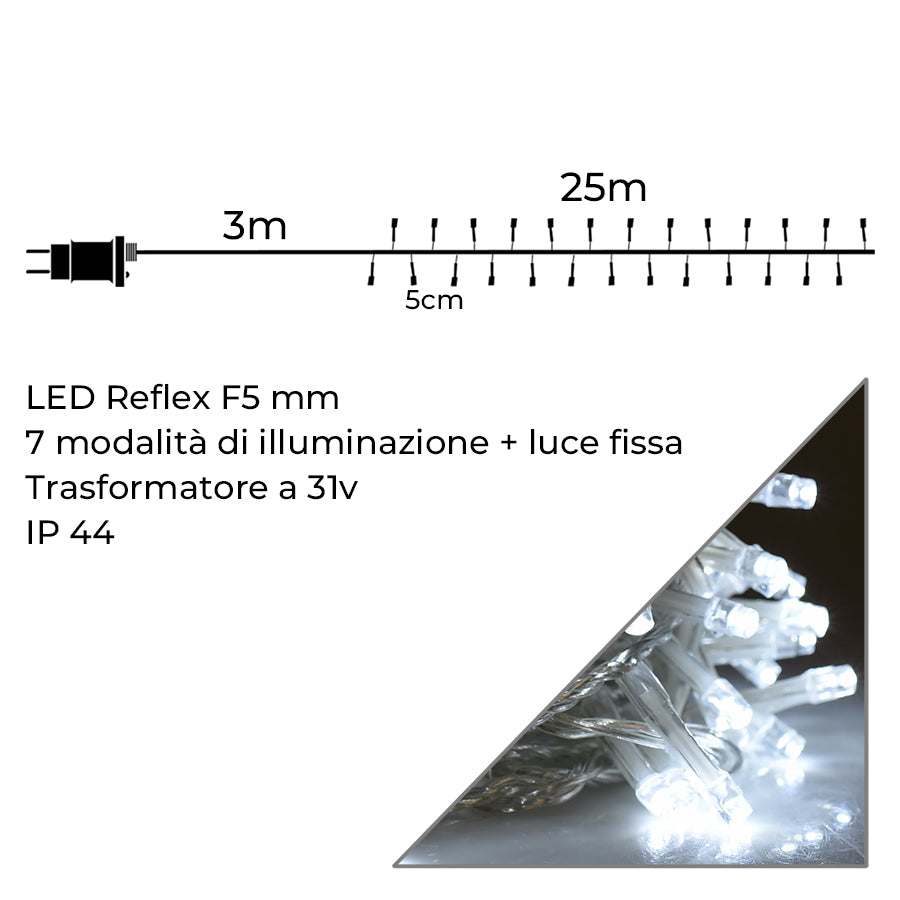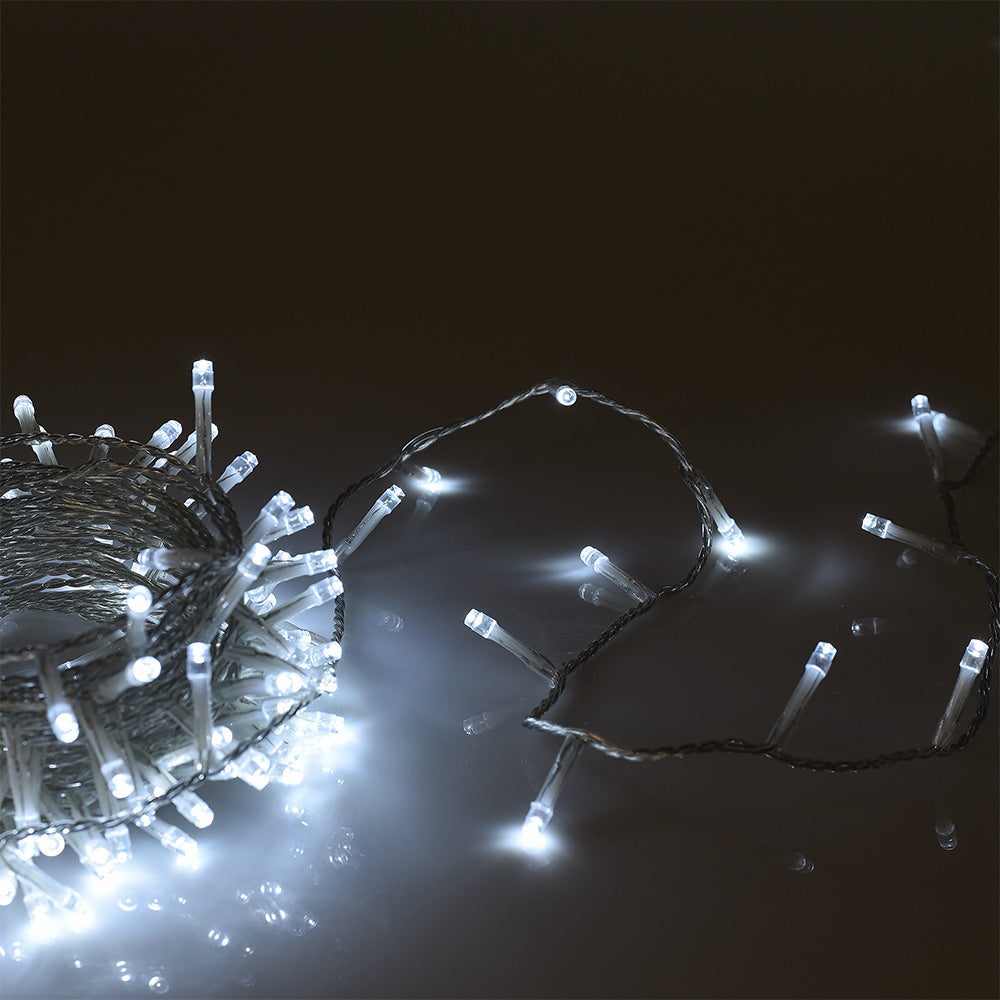 CATENA 500 LUCI LED BIANCHE CAVO TRASPARENTE DA 25MT PER INTERNI/ESTERNI - ILLUMINAZIONE A BASSA TENSIONE 31V